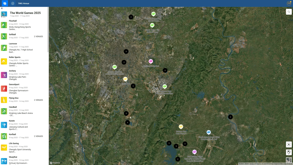 Sword Venue has partnered with The World Games 2025, taking place in Chengdu, China, to deliver a comprehensive digital platform for venue design, layout management and virtual navigation across 30 active venues, supporting more than 400 stakeholders worldwide.